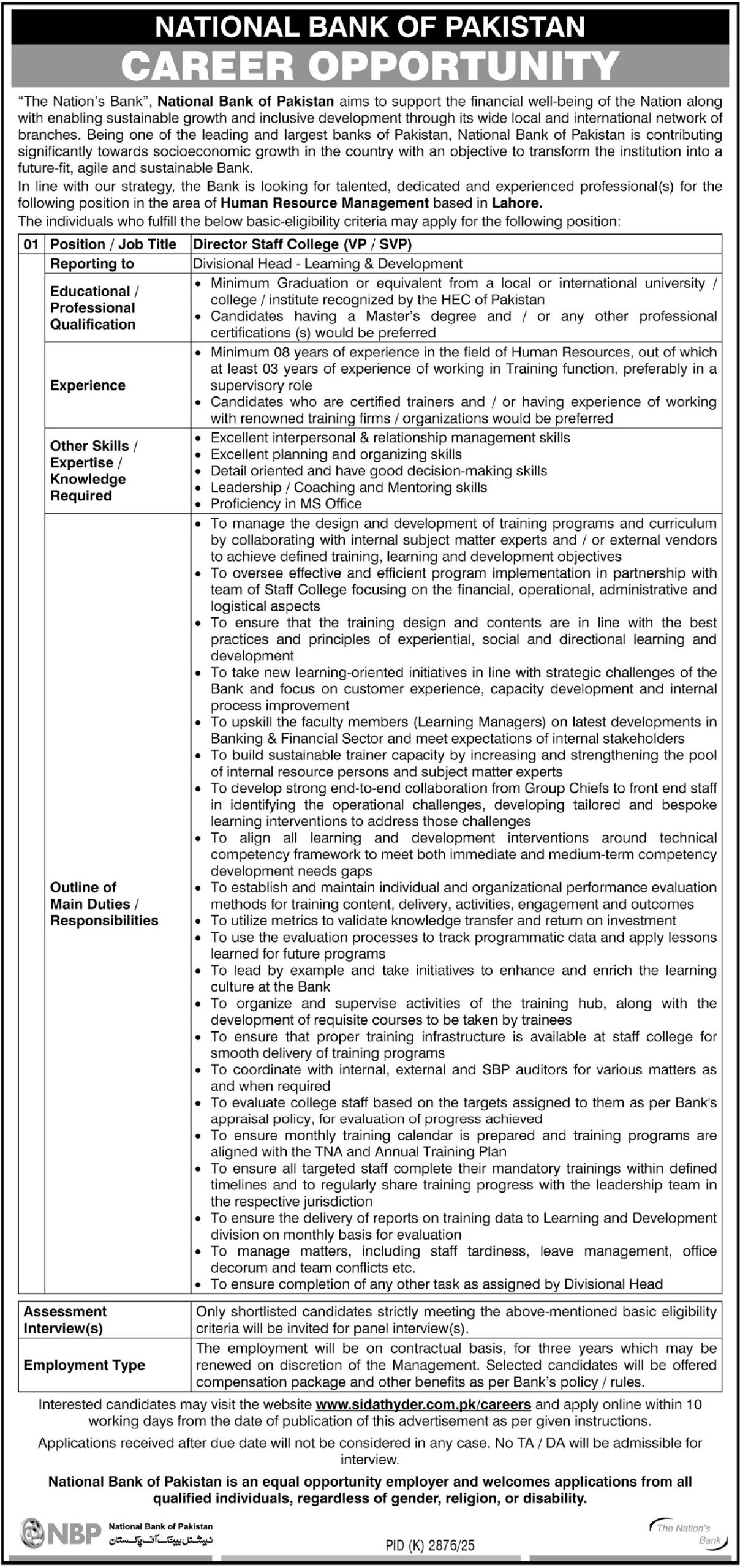 National Bank of Pakistan also contributes significantly to trade finance, corporate banking, and infrastructure development projects. National Bank of Pakistan NBP jobs are highly sought after by candidates seeking stable and rewarding careers in banking, finance, management, IT, and administration. Applicants can find the latest NBP jobs in Pakistan, eligibility criteria, and application procedures through official announcements and trusted job portals to build a successful career in the banking sector.