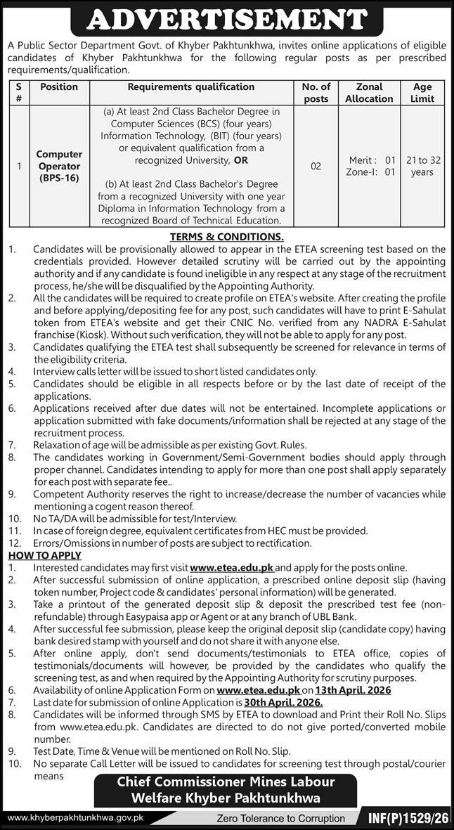 - Computer Operator BPS-16 (02 Positions)