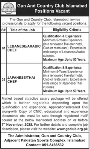Latest Government jobs in Gun and Country Club Islamabad in Management and others can be applied till 7 November 2025 or as per closing date in newspaper ad. Read complete ad online to know how to apply on latest Gun and Country Club Islamabad job opportunities.