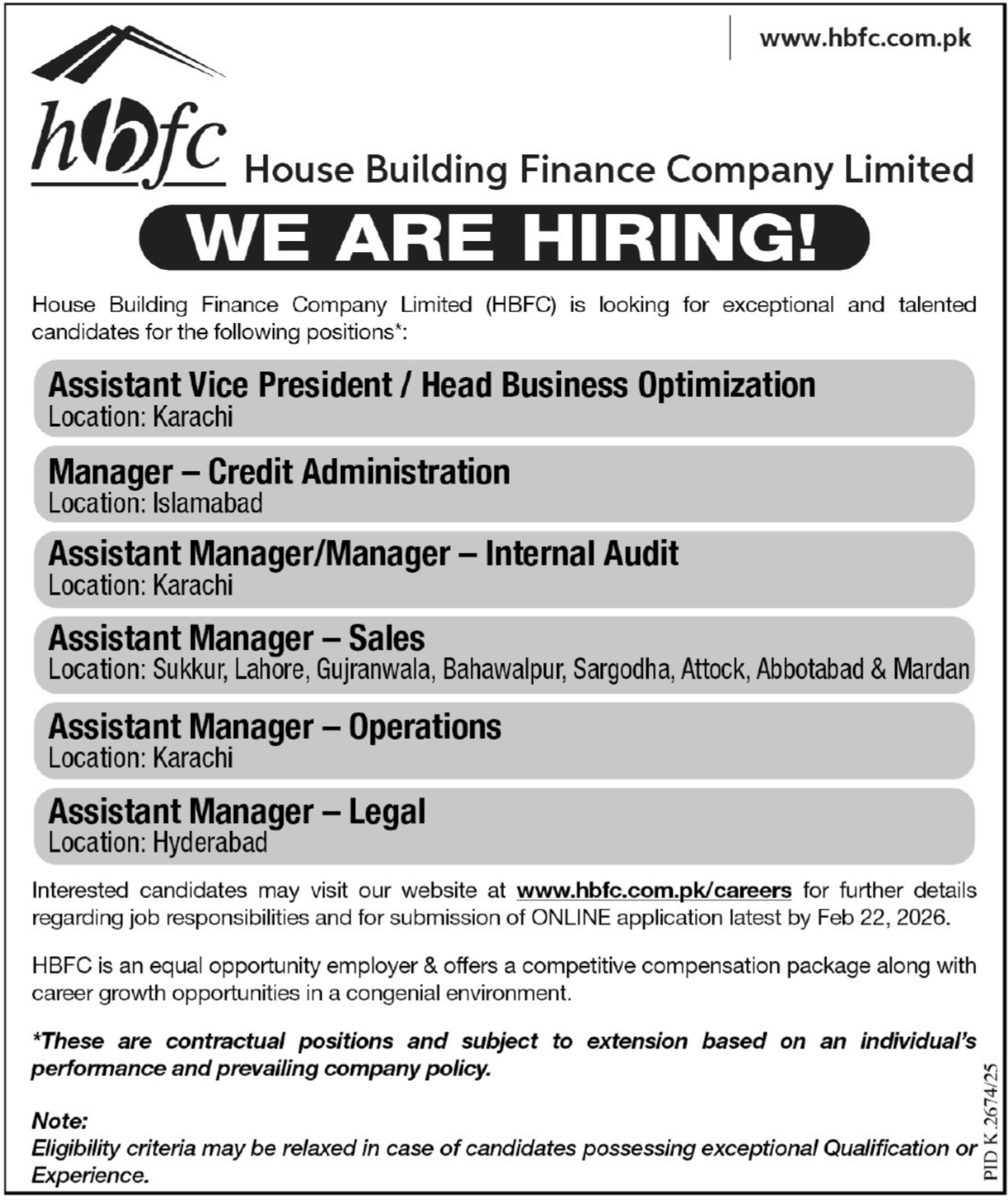 Latest Government jobs in House Building Finance Company Limited HBFCL in Management and others can be applied till 22 February 2026 or as per closing date in newspaper ad. Read complete ad online to know how to apply on latest House Building Finance Company Limited HBFCL job opportunities.