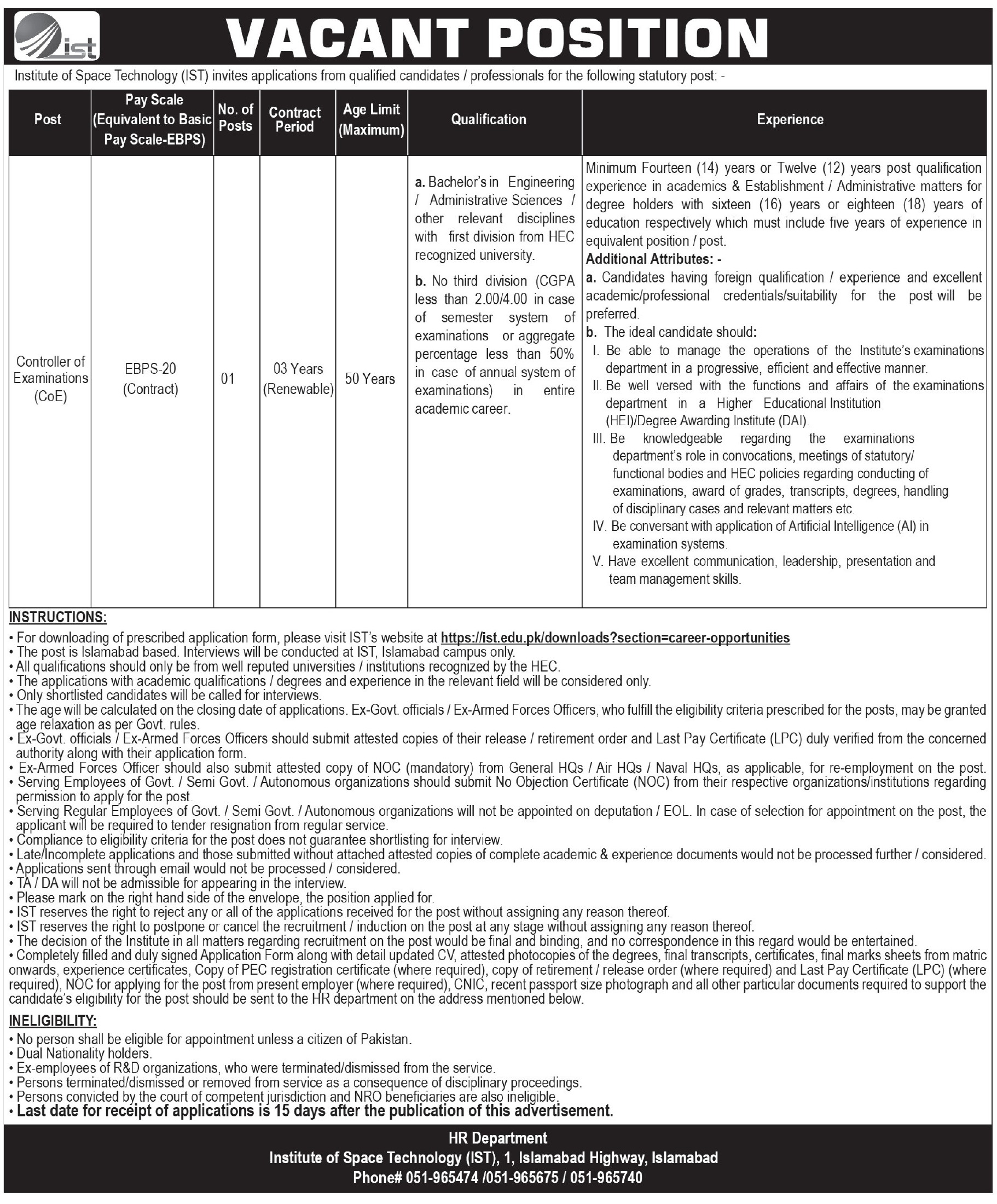 Institute Of Space Technology IST Islamabad Jobs 2026, Last Date 12-03-2026