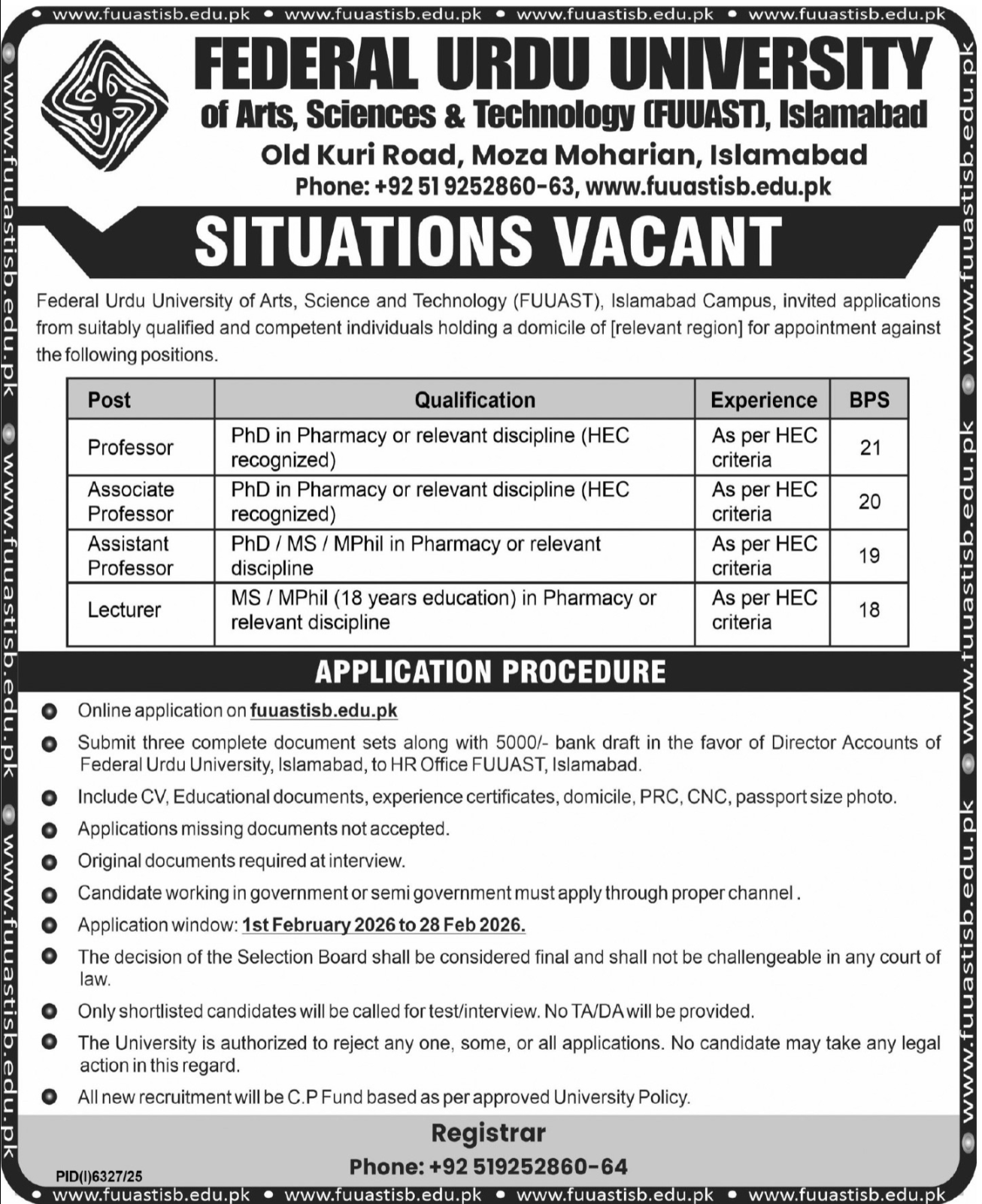 Federal Urdu University latest Government Education jobs and others can be applied till 28 February 2026 or as per closing date in newspaper ad. Read complete ad online to know how to apply on latest Federal Urdu University job opportunities.