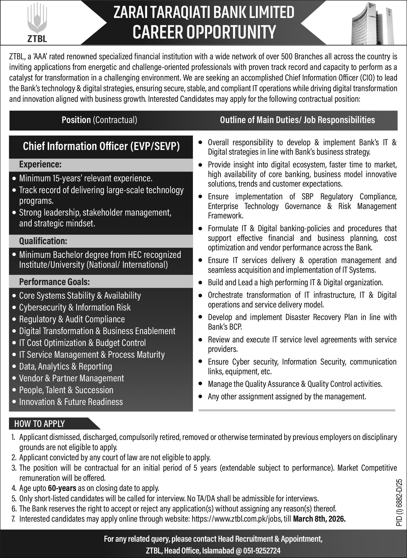 Jobs Announcement At Zarai Taraqiati Bank Limited ZTBL 2026, Last Date 08-03-2026