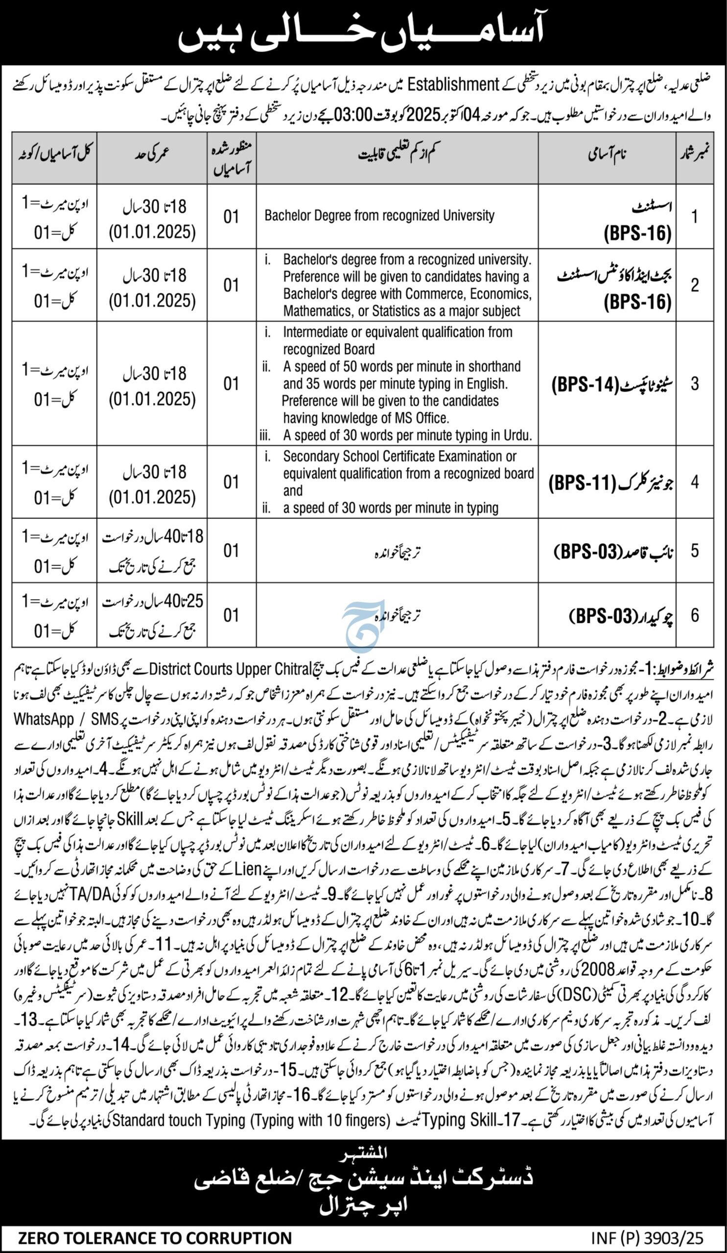 Jobs in District And Session Judge Chitral, Last Date 30-09-2025