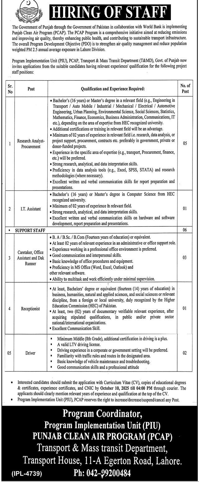 Transport & Mass Transit Department latest Government Management jobs and others can be applied till 10 October 2025 or as per closing date in newspaper ad. Read complete ad online to know how to apply on latest Transport & Mass Transit Department job opportunities.