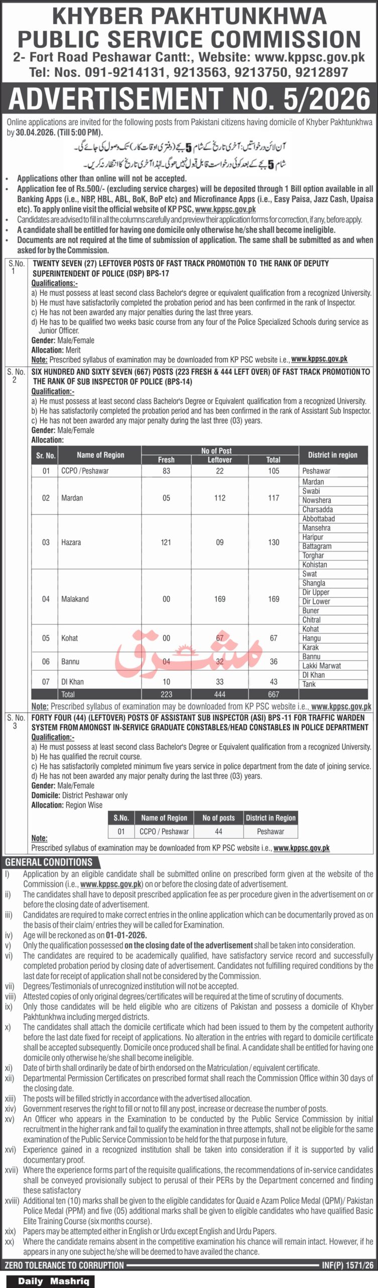 Khyber Pakhtunkhwa Public Service Commission KPPSC Job 2026, Last Date 27-04-2026