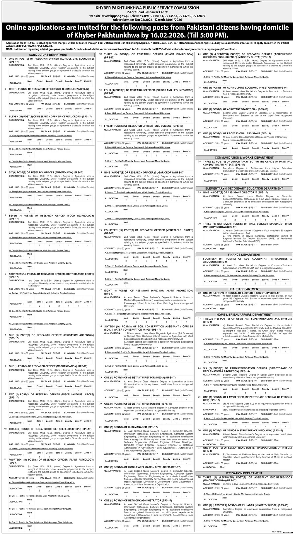 Apply at Khyber Pakhtunkhwa Public Service Commission KPPSC latest Government jobs in Management and departments before closing date which is around February 18, 2026 or as per closing date in newspaper ad. Read complete ad online to know how to apply on latest Khyber Pakhtunkhwa Public Service Commission KPPSC job opportunities.