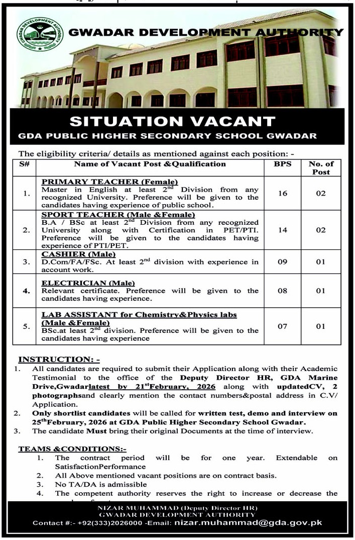 - Sport Teacher (Male & Female) BPS-14