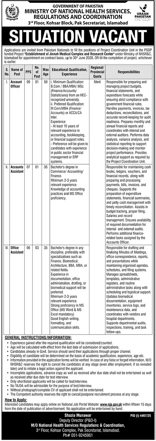 Latest Jobs At Ministry Of National Health Services, Last Date 15-12-2025
