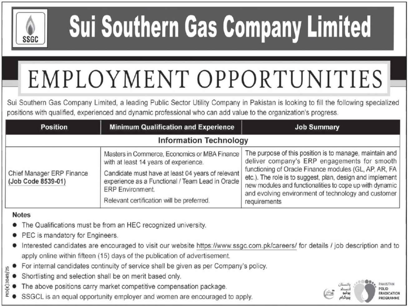 The Sui Southern Gas Company Limited regularly announces career opportunities for individuals seeking SSGC jobs, government energy sector jobs in Pakistan, or careers in engineering, administration, finance, and technical fields. These positions offer professional growth, job security, and competitive benefits.