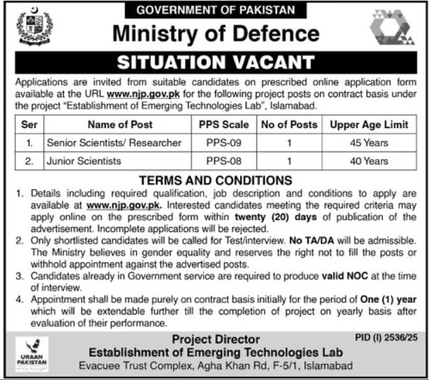 Latest Management jobs and others Government jobs in Ministry of Defence closing date is around October 15, 2025, see exact from ad. Read complete ad online to know how to apply on latest Ministry of Defence job opportunities.