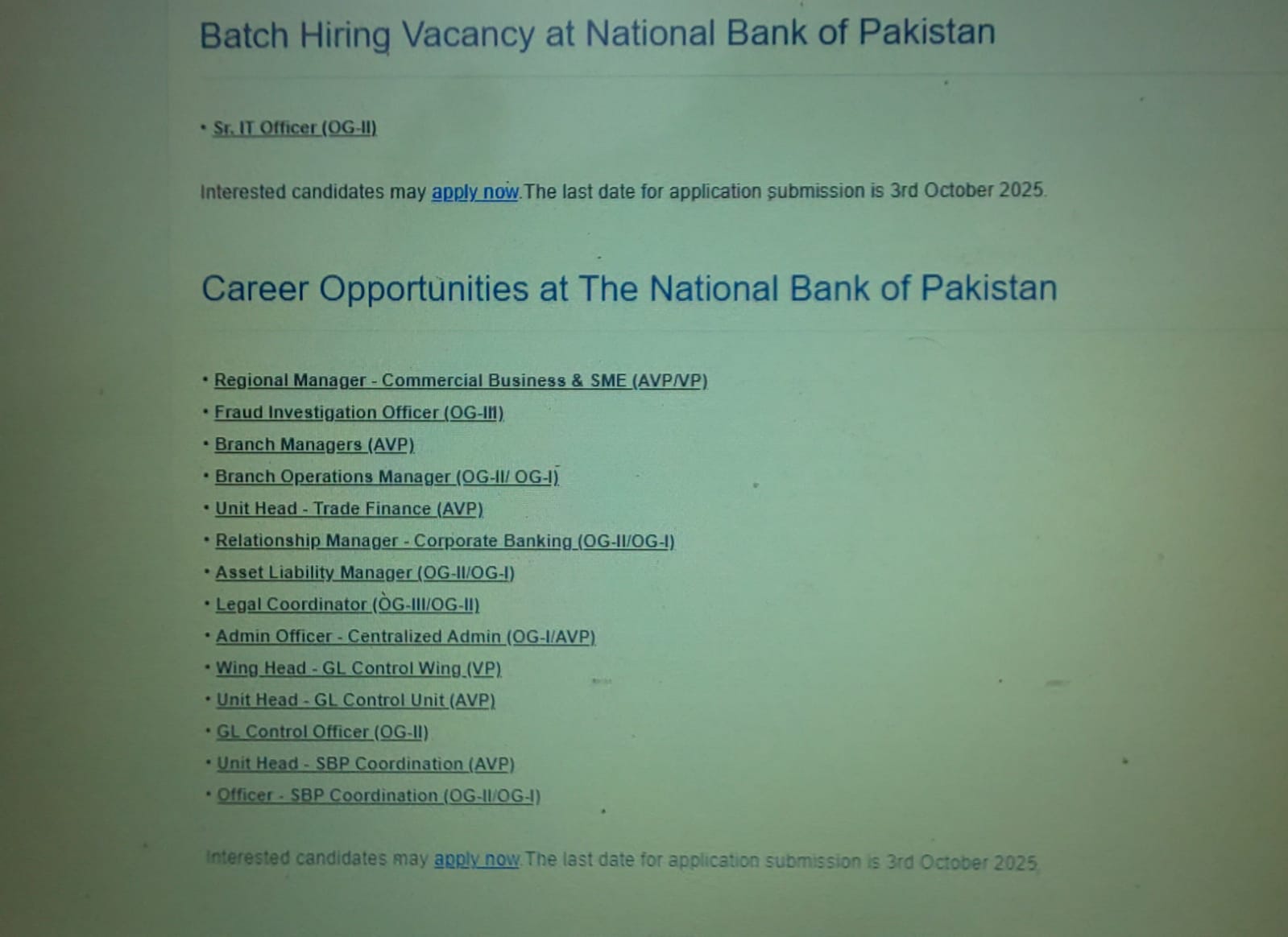 Latest Jobs in National Bank of Pakistan NBP, Last Date 06-10-2025
