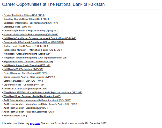 Latest Jobs in National Bank Of Pakistan NBP, Last Date 12-12-2025