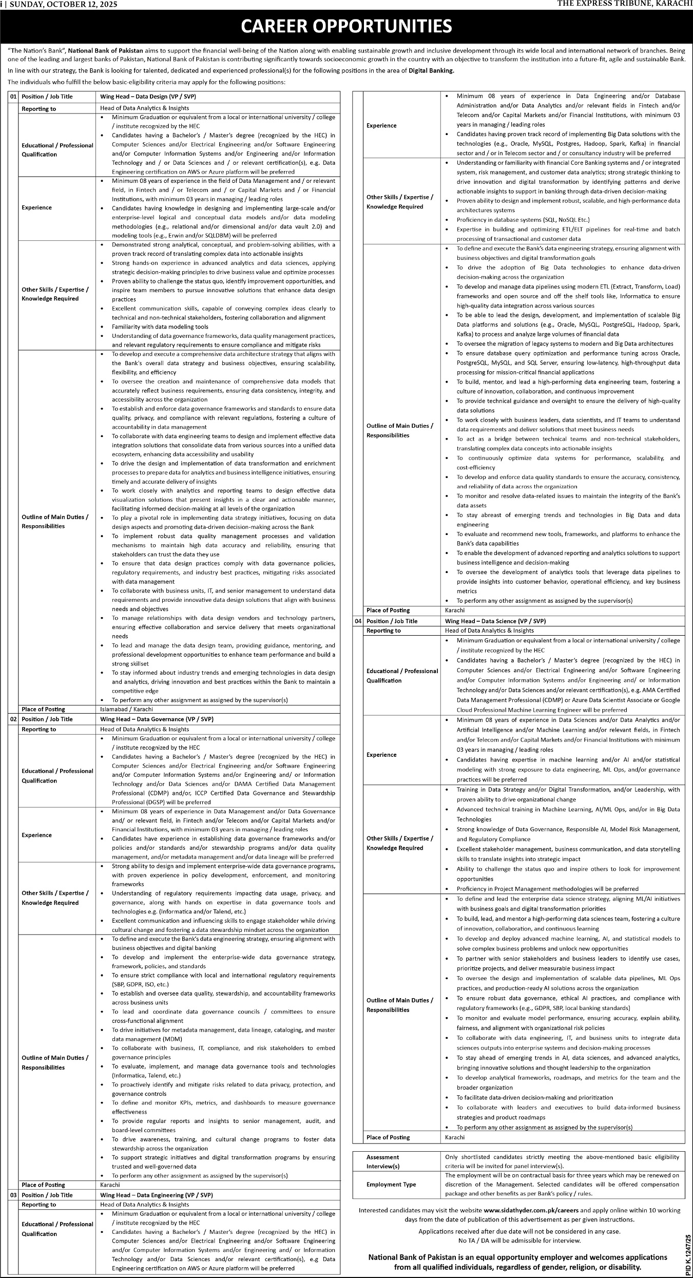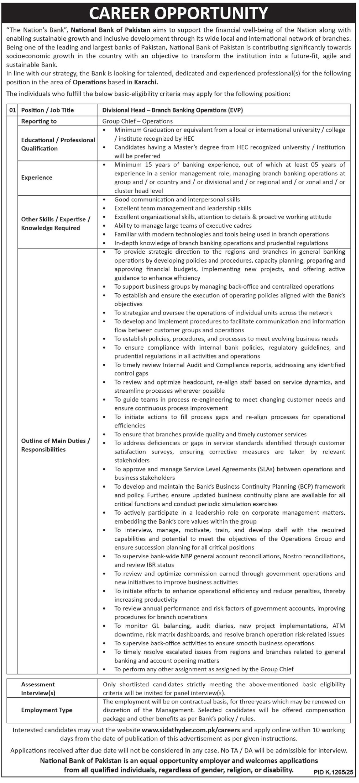 National Bank of Pakistan NBP latest Government Bank jobs and others can be applied till undefined NaN, NaN or as per closing date in newspaper ad. Read complete ad online to know how to apply on latest National Bank of Pakistan NBP job opportunities.