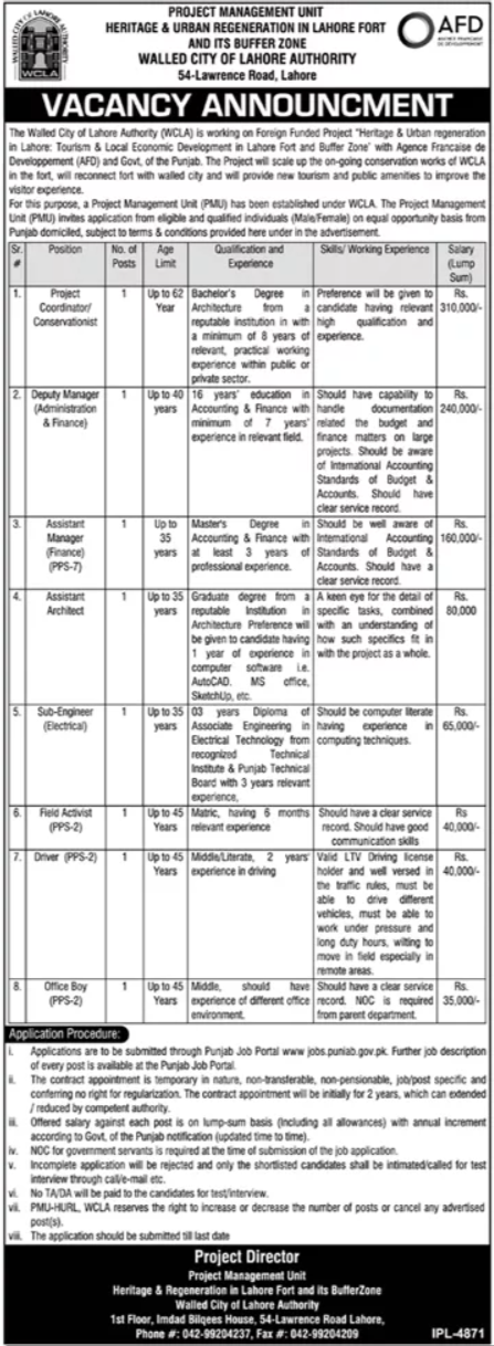 Apply at Walled City of Lahore Authority latest Government jobs in Management and departments before closing date which is around October 17, 2025 or as per closing date in newspaper ad. Read complete ad online to know how to apply on latest Walled City of Lahore Authority job opportunities.