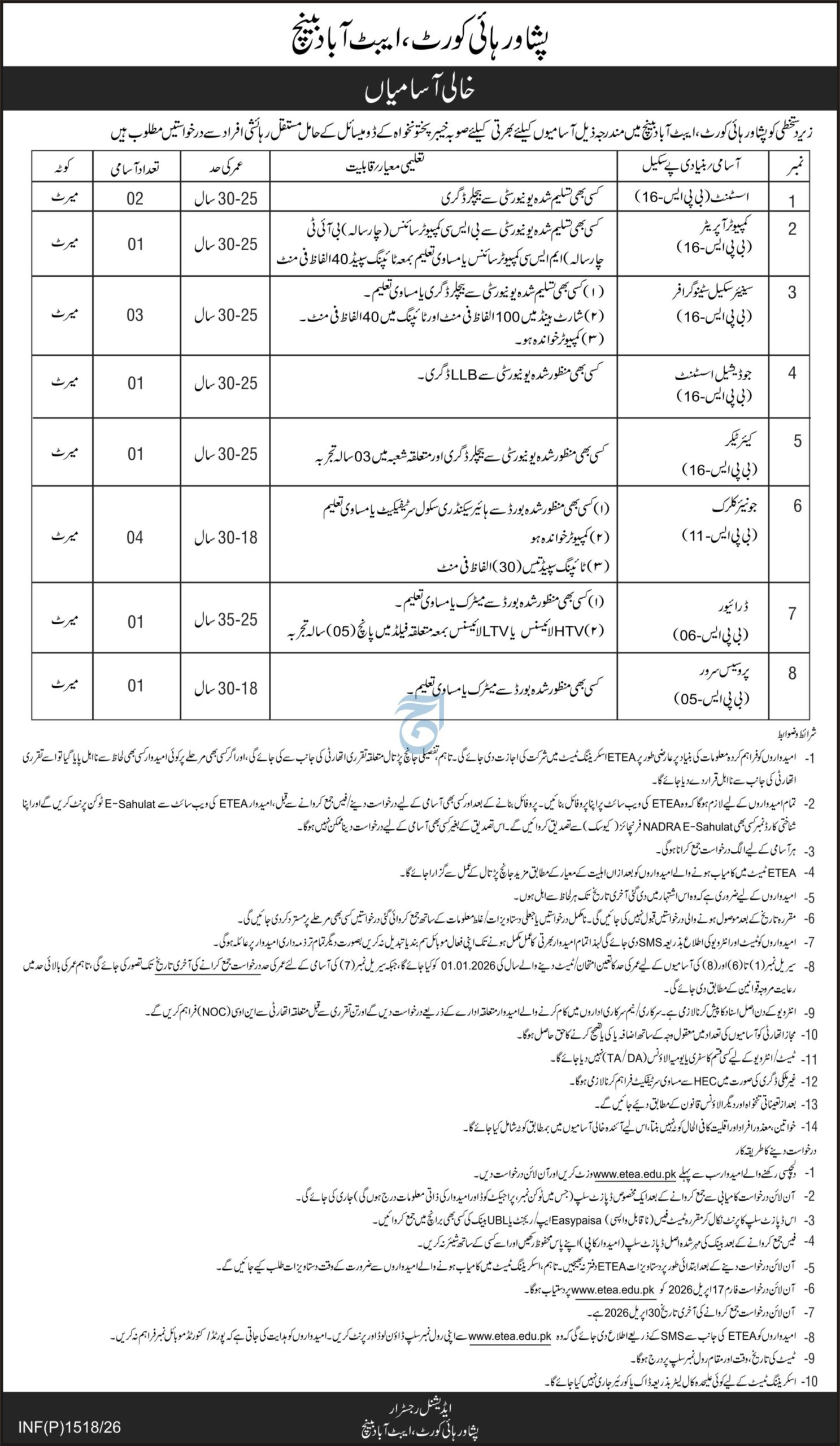 Latest Jobs Open At Peshawar High Court 2026, Last Date 30-04-2026