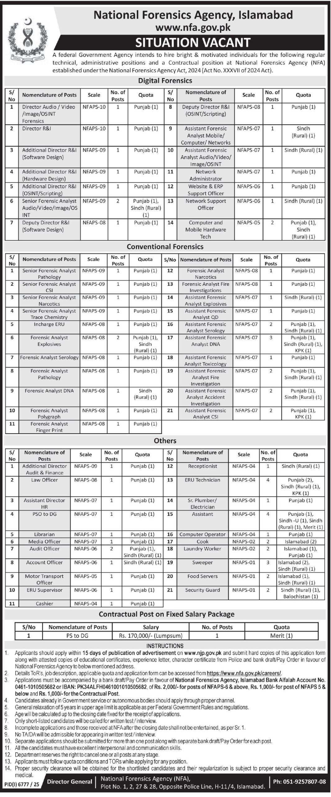 National Forensics Agency jobs are highly attractive for professionals in forensic science, IT, cybersecurity, chemistry, biology, and law enforcement fields. Candidates seeking the latest NFA jobs in Pakistan can find complete details about vacancies, eligibility criteria, and application procedures through official notifications and trusted job portals. Stay updated with National Forensics Agency career opportunities to build a rewarding future in Pakistan’s forensic and investigative sector.