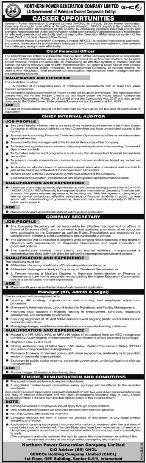 Northern Power Generation Company latest Government Management jobs and others can be applied till October 21, 2025 or as per closing date in newspaper ad. Read complete ad online to know how to apply on latest Northern Power Generation Company job opportunities.
