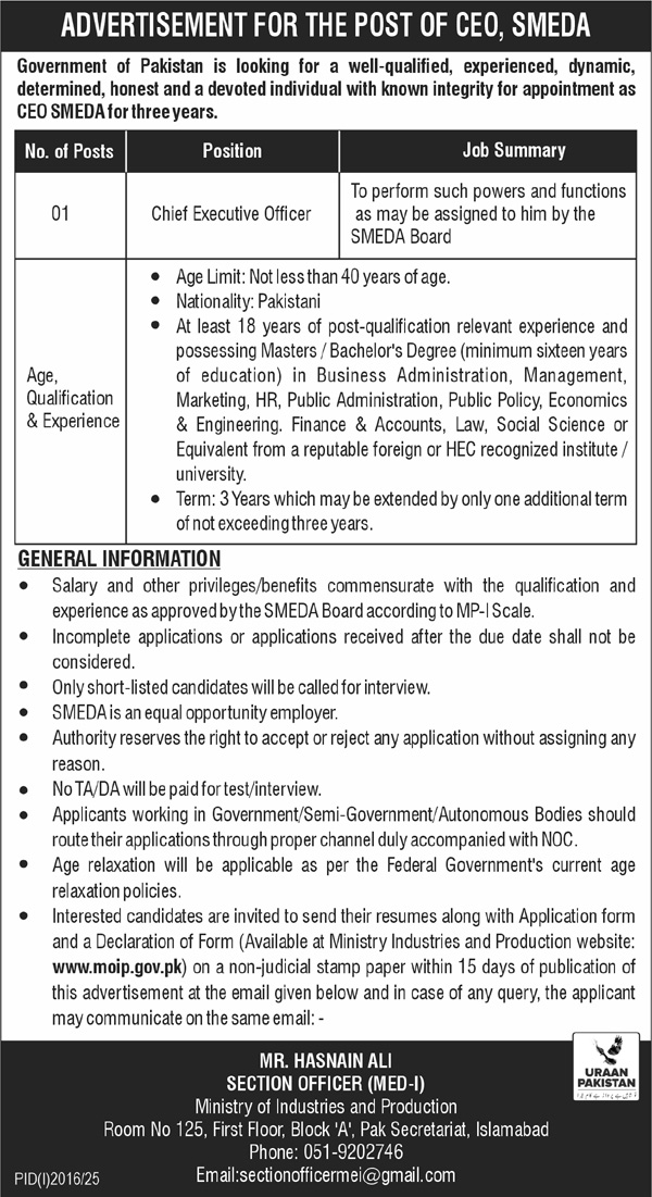 Ministry of Industries and Production latest Government Management jobs and others can be applied till September 24, 2025 or as per closing date in newspaper ad. Read complete ad online to know how to apply on latest Ministry of Industries and Production job opportunities.
