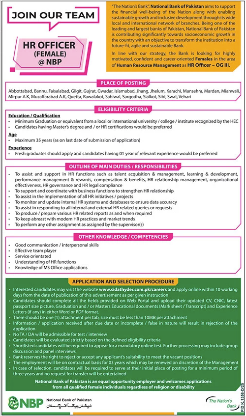 National Bank Of Pakistan NBP Lahore Jobs, Last Date 07-11-2025