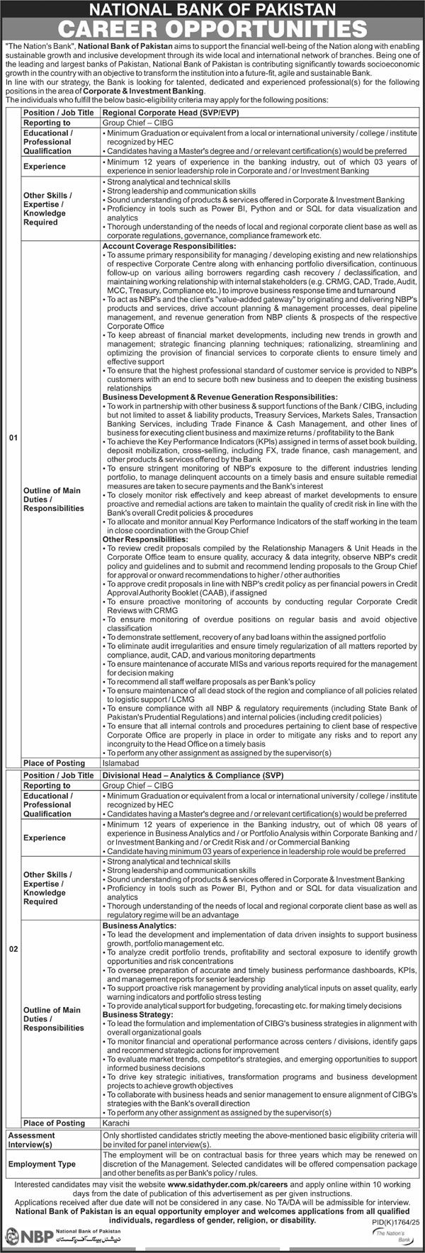 National Bank of Pakistan NBP latest Government Management jobs and others can be applied till November 30, 2025 or as per closing date in newspaper ad. Read complete ad online to know how to apply on latest National Bank of Pakistan NBP job opportunities.