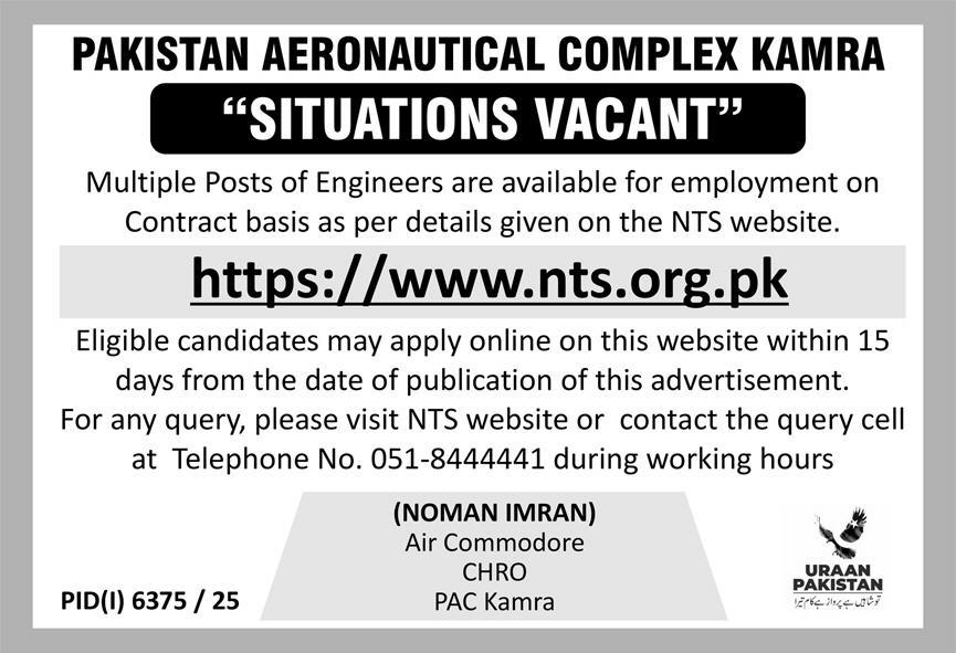 Pakistan Aeronautical Complex PAC latest Government Engineering jobs and others can be applied till February 19, 2026 or as per closing date in newspaper ad. Read complete ad online via NTS to know how to apply on latest Pakistan Aeronautical Complex PAC job opportunities.