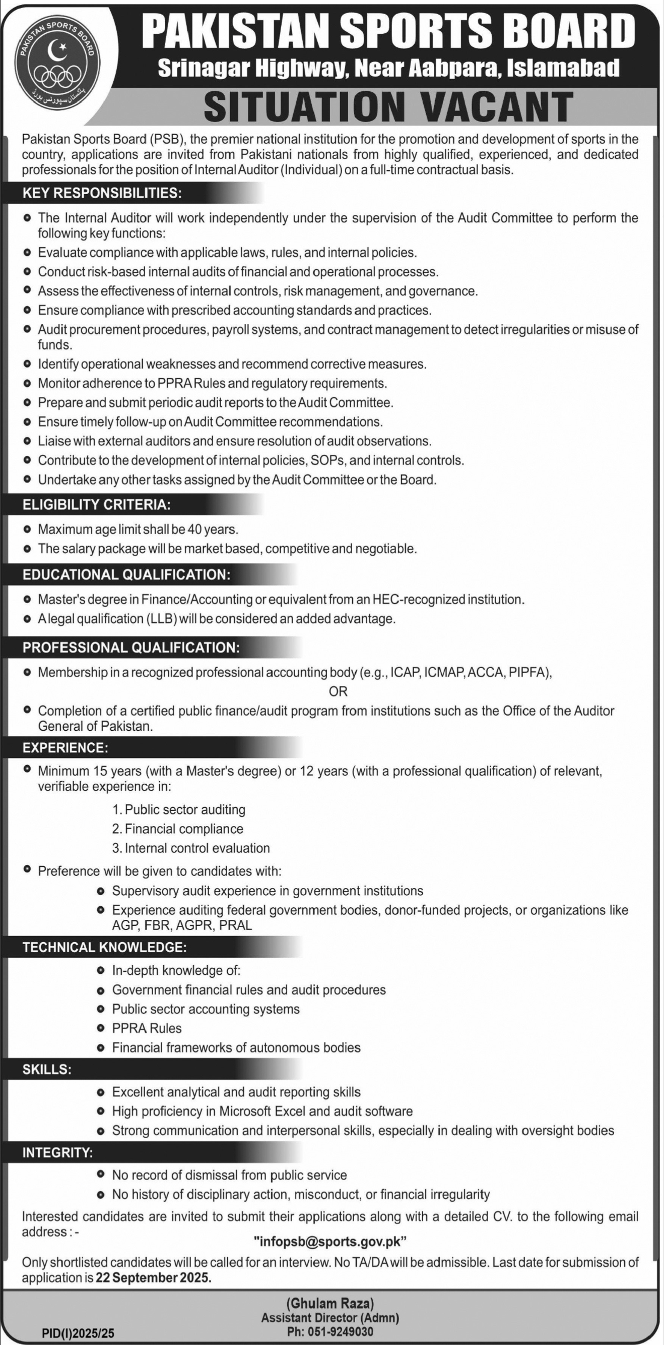 Interested candidates can submit their applications along with detailed CV on this email address: infopsb@sports.govt.pk