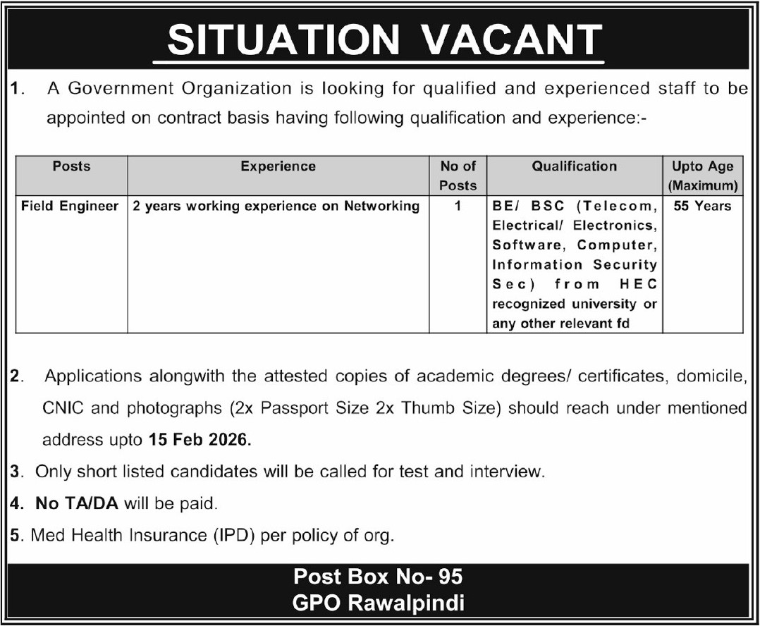 Post Box No 95 GPO Rawalpindi Jobs are a prominent opportunity for individuals seeking government employment in Rawalpindi, Pakistan. Advertised through the General Post Office (GPO), these jobs provide a secure and reputable platform for candidates to build a professional career in public service. Post Box No 95 GPO Rawalpindi offers a variety of positions across administrative, clerical, technical, and support services, allowing applicants from diverse educational and professional backgrounds to find suitable opportunities.