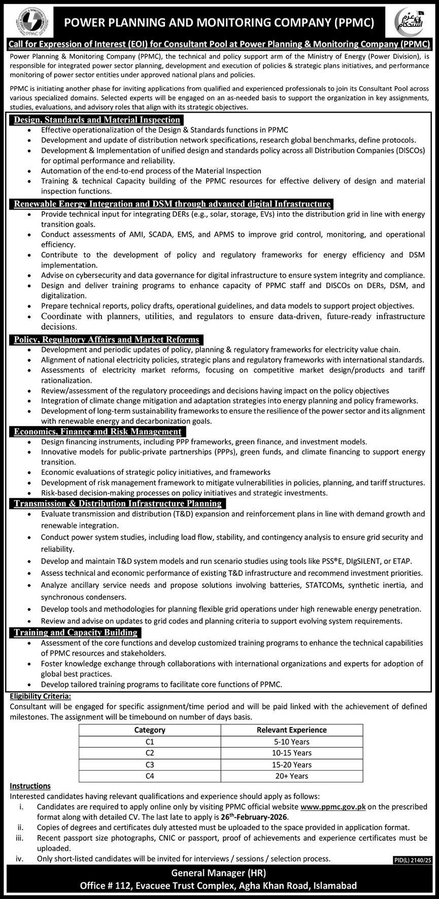 Power Planning and Monitoring Company latest Government Management jobs and others can be applied till February 26, 2026 or as per closing date in newspaper ad. Read complete ad online to know how to apply on latest Power Planning and Monitoring Company job opportunities.