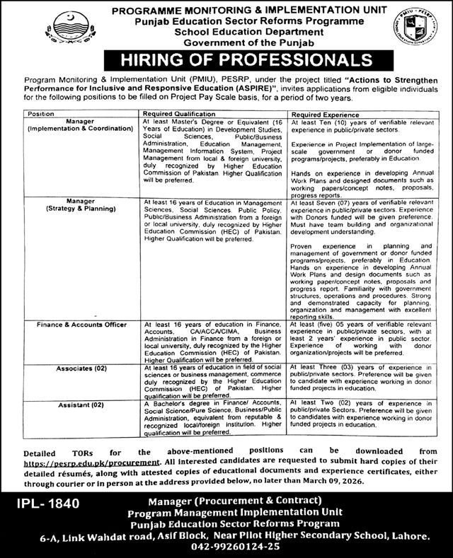Programme Monitoring & Implementation Unit jobs offer excellent government career opportunities for professionals in project management, data analysis, finance, IT, and public administration. Candidates searching for the latest PMIU jobs in Pakistan can find complete details about vacancies, eligibility criteria, and application procedures through official notifications and trusted job portals to build a successful career in the public sector.