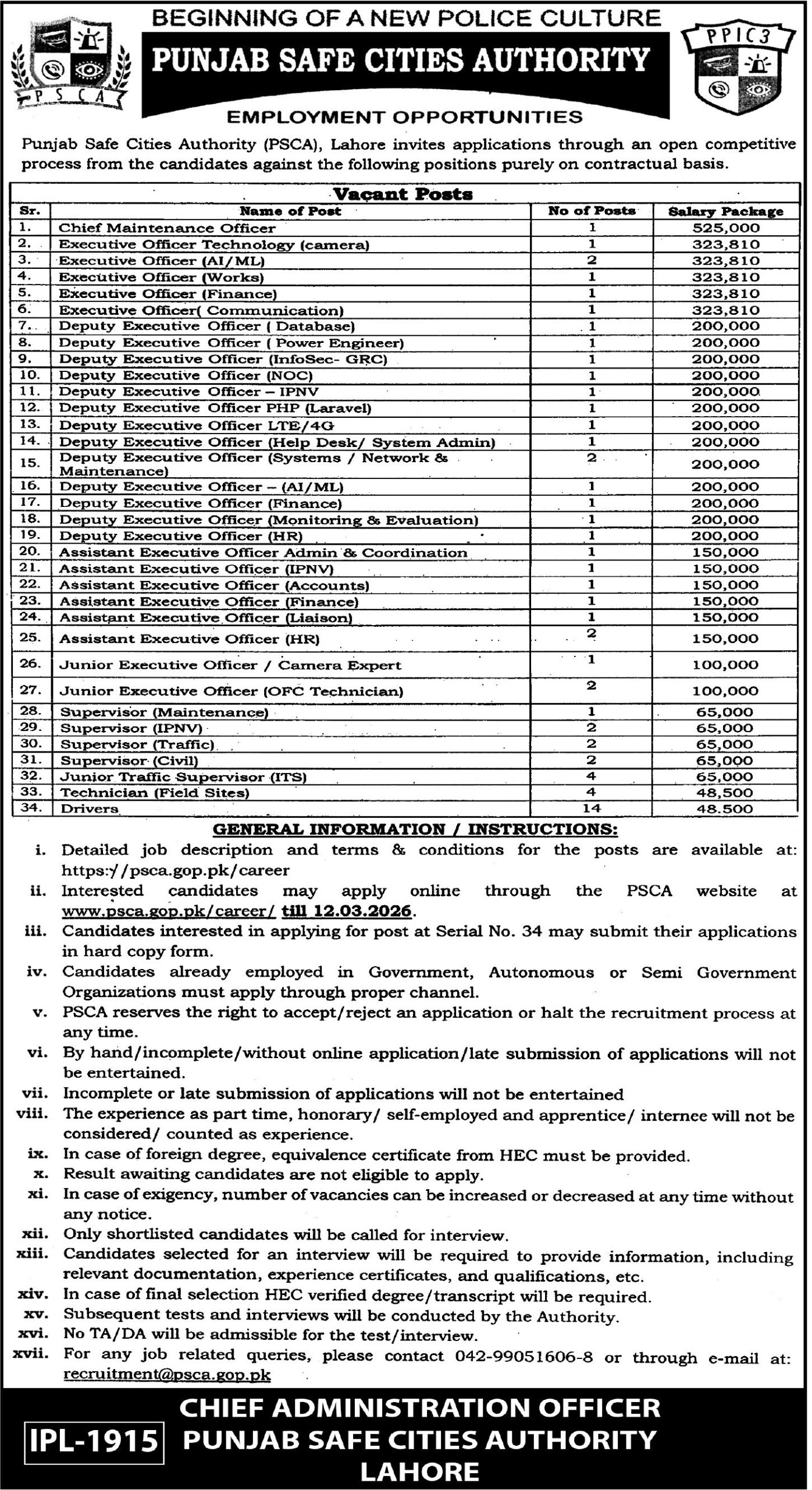 Punjab Safe Cities Authority jobs are highly sought after by professionals in IT, software engineering, cybersecurity, data analysis, administration, and law enforcement support roles. Candidates searching for the latest PSCA jobs in Pakistan can find complete details about vacancies, eligibility criteria, and application procedures through official announcements and trusted job portals to build a successful career in Pakistan’s public safety and technology sector.