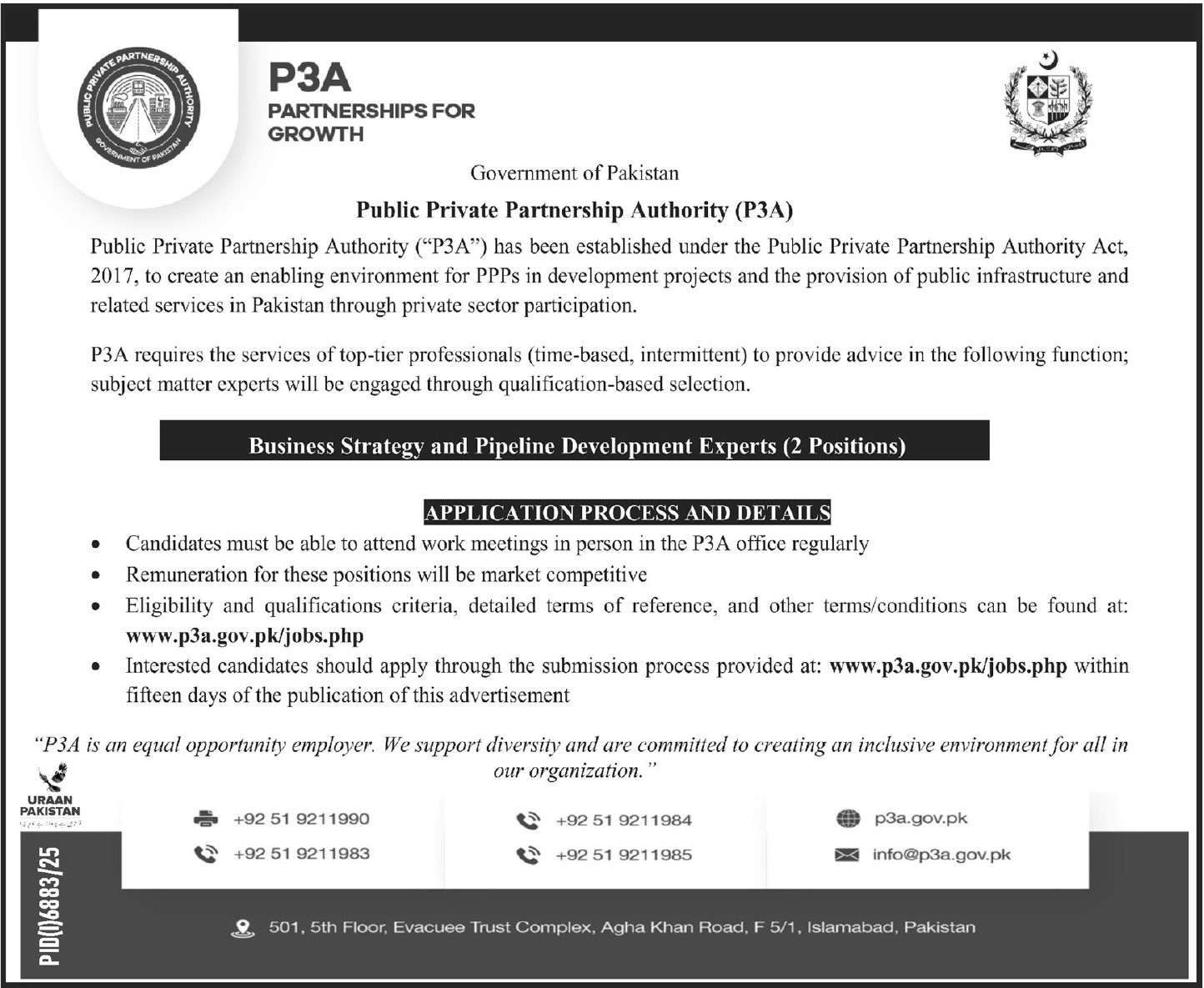 Public Private Partnership Authority P3A Islamabad jobs offer excellent government career opportunities for professionals in finance, law, engineering, project management, and public administration. Candidates searching for the latest P3A jobs in Pakistan can find detailed information about vacancies, eligibility criteria, and application procedures through official announcements and trusted job portals to build a successful career in infrastructure and investment development.