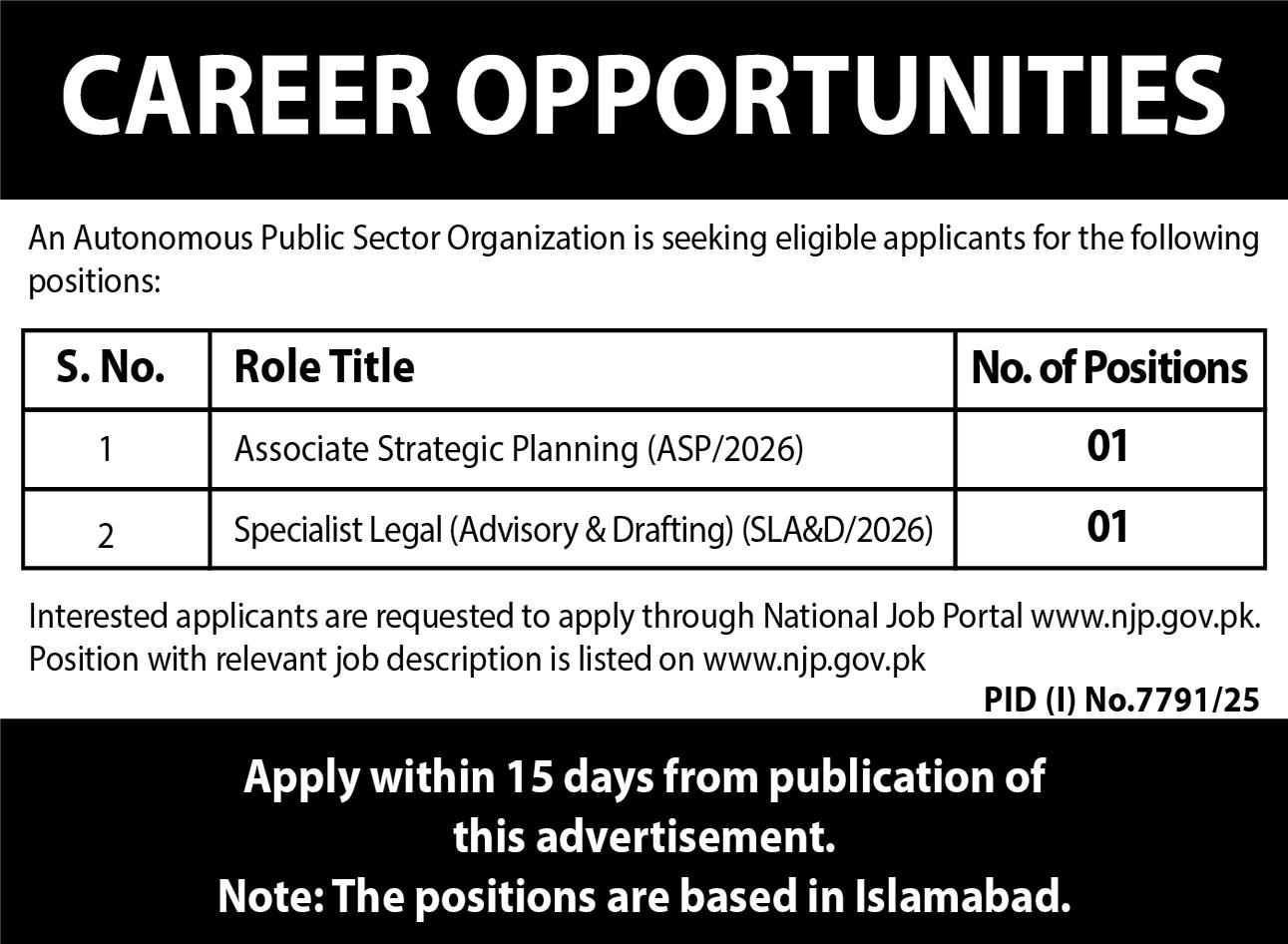 Public Sector Organization Islamabad jobs are highly attractive for job seekers due to their stability, competitive salaries, and long-term career growth. These organizations regularly announce vacancies for positions such as administrative officers, engineers, IT specialists, clerks, assistants, and management staff. Opportunities are available for candidates with qualifications ranging from Matric and Intermediate to Bachelor’s and Master’s degrees. In addition, fresh graduates and experienced professionals alike can benefit from equal employment opportunities, training programs, and promotions based on performance. Working in a public sector organization not only ensures financial security but also provides a chance to serve the country.