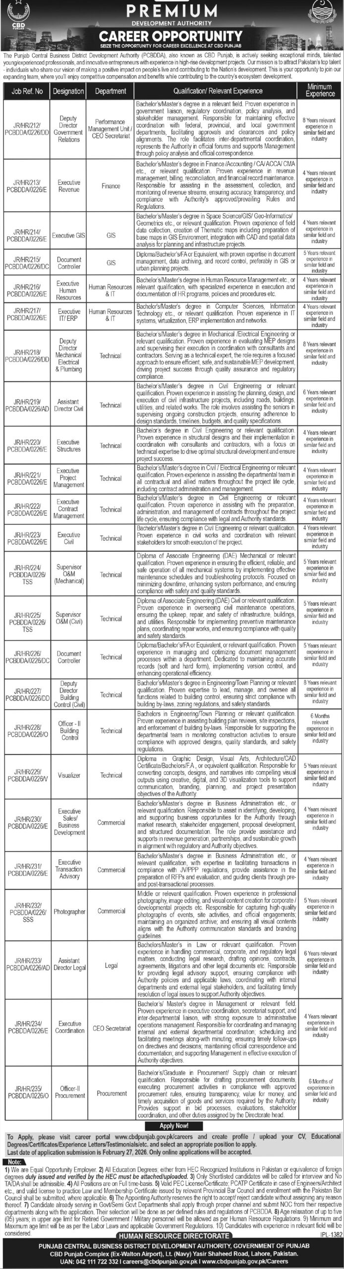 Punjab Central Business District Development Authority PCBDDA latest Government Management jobs and others can be applied till 27 February 2026 or as per closing date in newspaper ad. Read complete ad online to know how to apply on latest Punjab Central Business District Development Authority PCBDDA job opportunities.