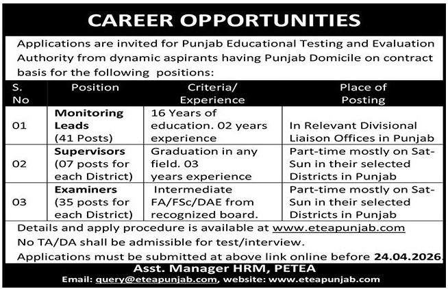 Punjab Educational Testing & Evaluation Authority Jobs 2026, Last Date 24-04-2026
