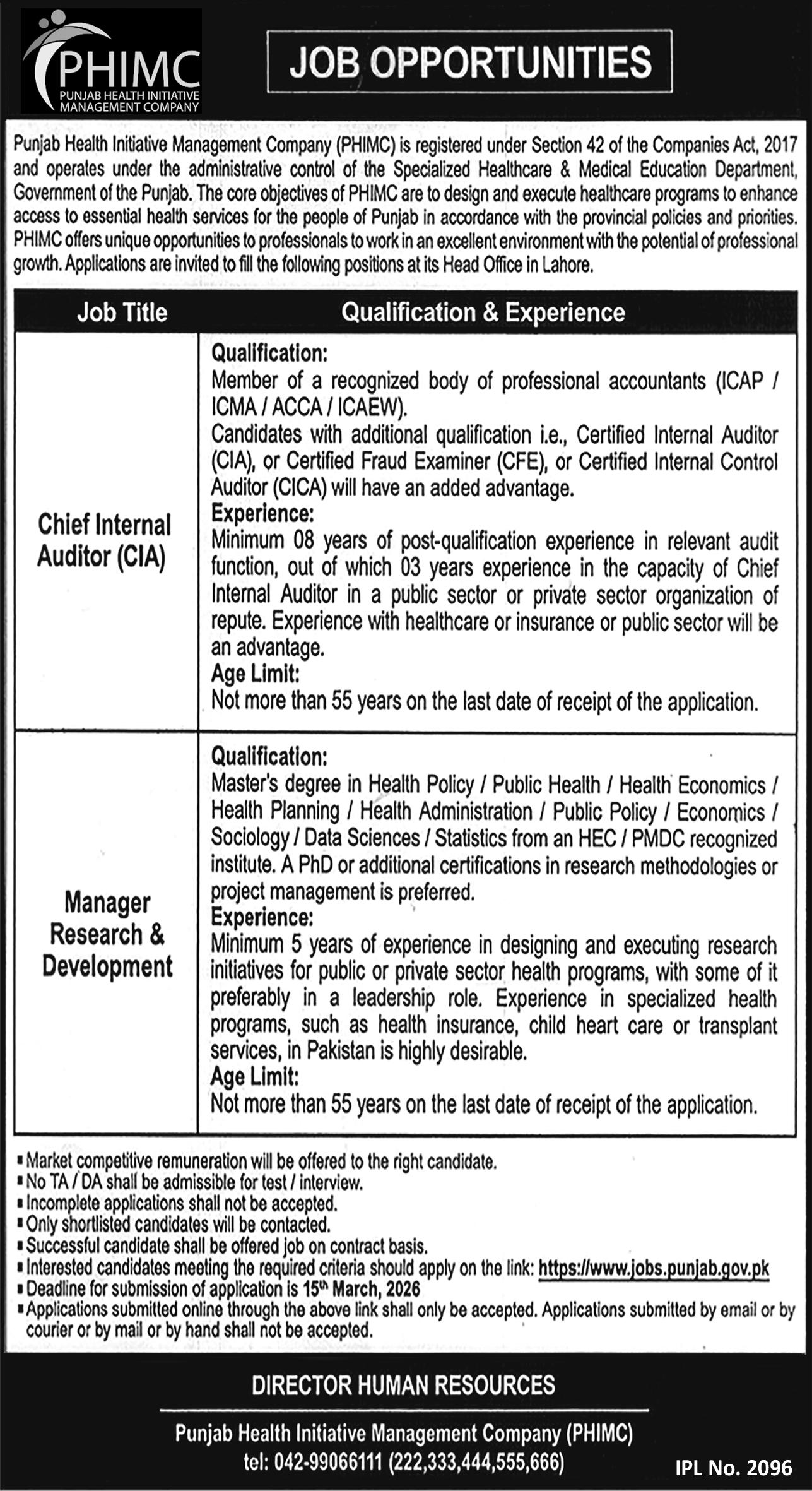 Punjab Health Initiative Management Company (PHIMC) is a public sector organization established by the Government of Punjab to implement universal health coverage and social health protection programs across Punjab, Pakistan. Punjab Health Initiative Management Company PHIMC manages flagship health insurance schemes, including the Sehat Sahulat Program, ensuring free and cashless medical treatment for eligible families at empaneled public and private hospitals. The company focuses on healthcare financing, hospital empanelment, claims management, fraud control, and digital monitoring systems to enhance transparency and service delivery.