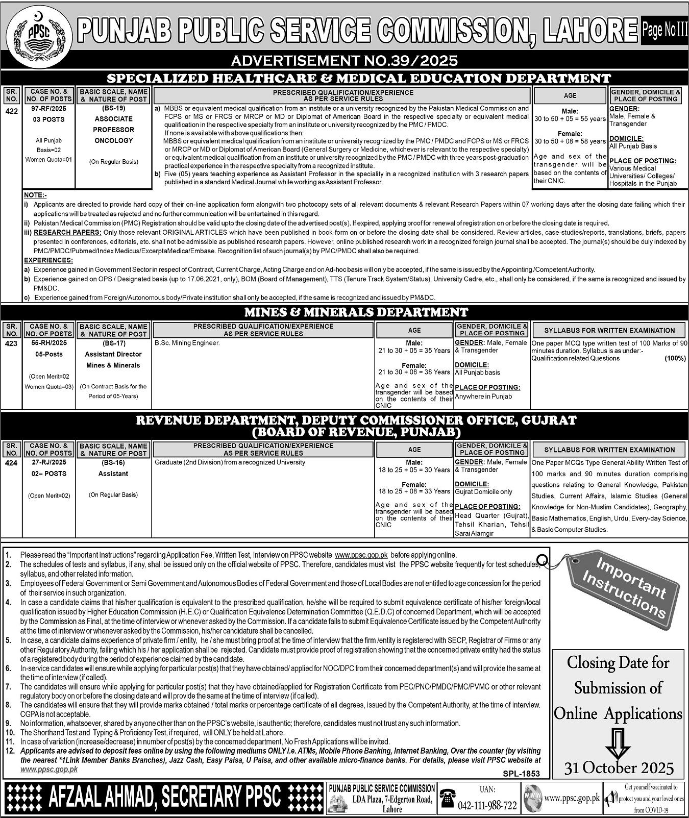 Apply at Punjab Public Service Commission PPSC latest Government jobs in Management and departments before closing date which is around October 31, 2025 or as per closing date in newspaper ad. Read complete ad online via PPSC to know how to apply on latest Punjab Public Service Commission PPSC job opportunities.