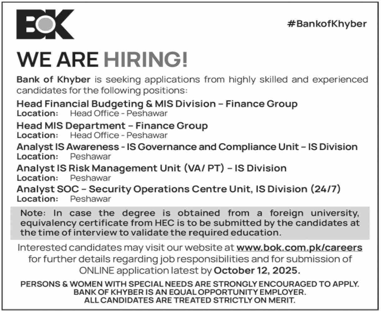 For professionals seeking BOK jobs, government banking jobs in Peshawar, or careers in finance, accounting, and banking operations, The Bank of Khyber provides diverse employment opportunities across technical, administrative, and managerial roles. Overall, the Bank of Khyber BOK Peshawar remains a cornerstone of Pakistan’s banking sector, delivering reliable financial services, fostering economic development, and empowering individuals and businesses through innovative banking solutions.