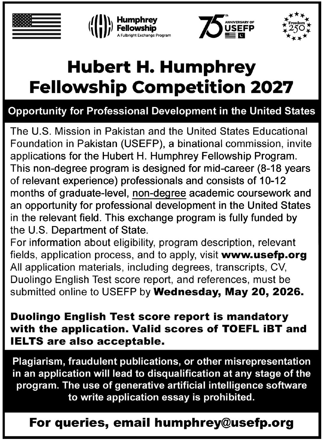 - Hubert H Humphery Fellowship Competition