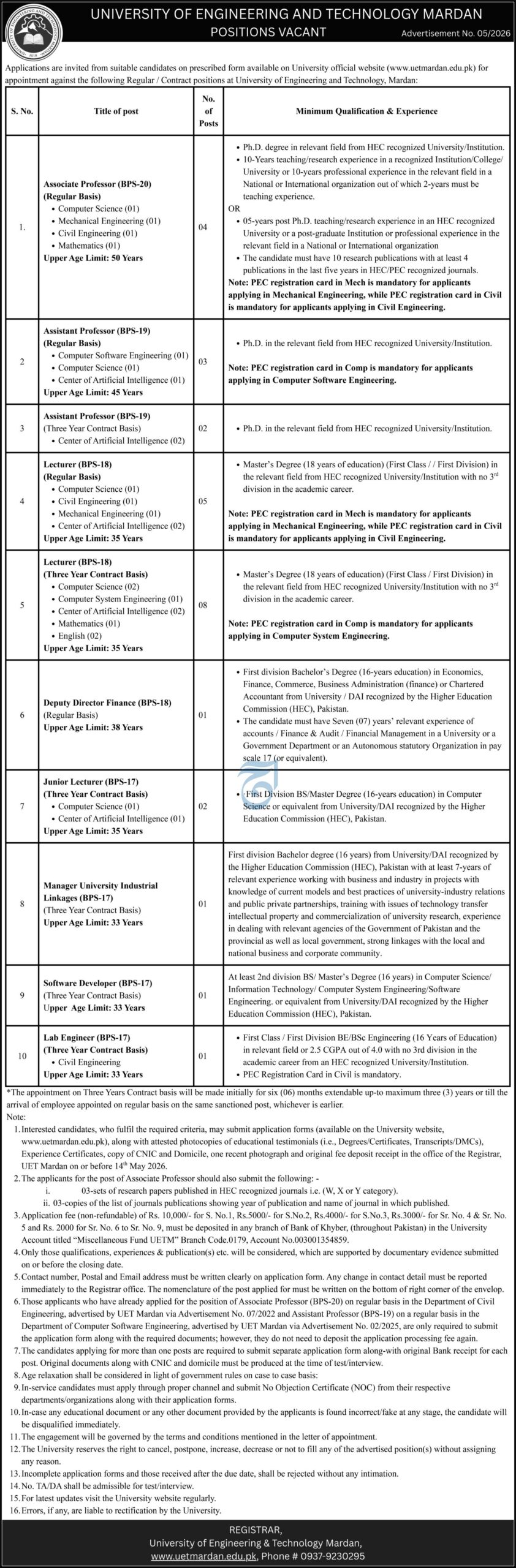 In terms of career opportunities, University of Engineering and Technology UET Mardan jobs are highly attractive for individuals seeking employment in the education sector. The university regularly announces vacancies in teaching and non-teaching positions, including lecturers, assistant professors, professors, lab engineers, administrative staff, IT professionals, and support personnel. These UET Mardan careers are open to candidates with qualifications ranging from Bachelor’s and Master’s degrees to PhD in relevant fields such as engineering, computer science, management sciences, and natural sciences. The institution also offers research fellowships, internships, and project-based roles, providing valuable experience for fresh graduates and academic professionals.