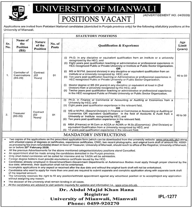 For individuals seeking University of Mianwali admissions, higher education programs in Punjab, or UMW jobs, the university offers professional opportunities in teaching, research, administration, and technical services. Overall, the University of Mianwali UMW serves as a vital institution for higher education in northern Punjab, fostering academic excellence, research innovation, and professional growth while contributing to the overall development of Pakistan.
