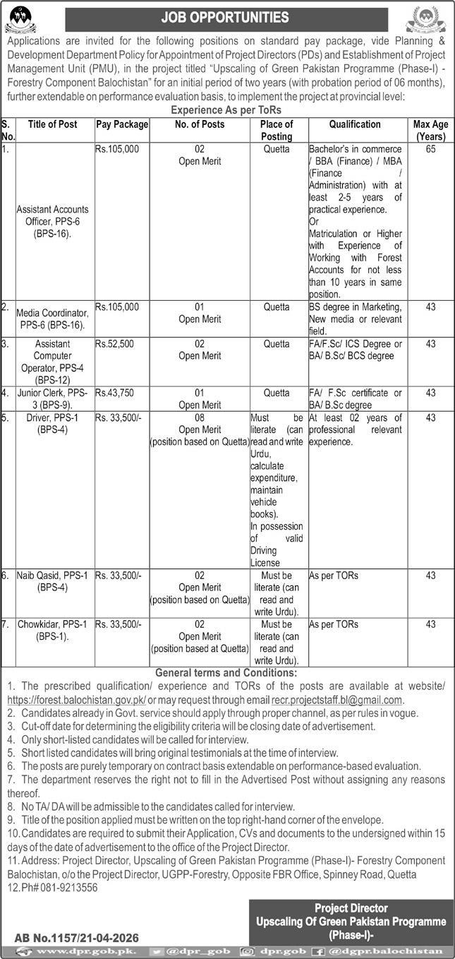 Upscaling Green Pakistan Programme UGPP Balochistan Jobs, Last Date 06-05-2026