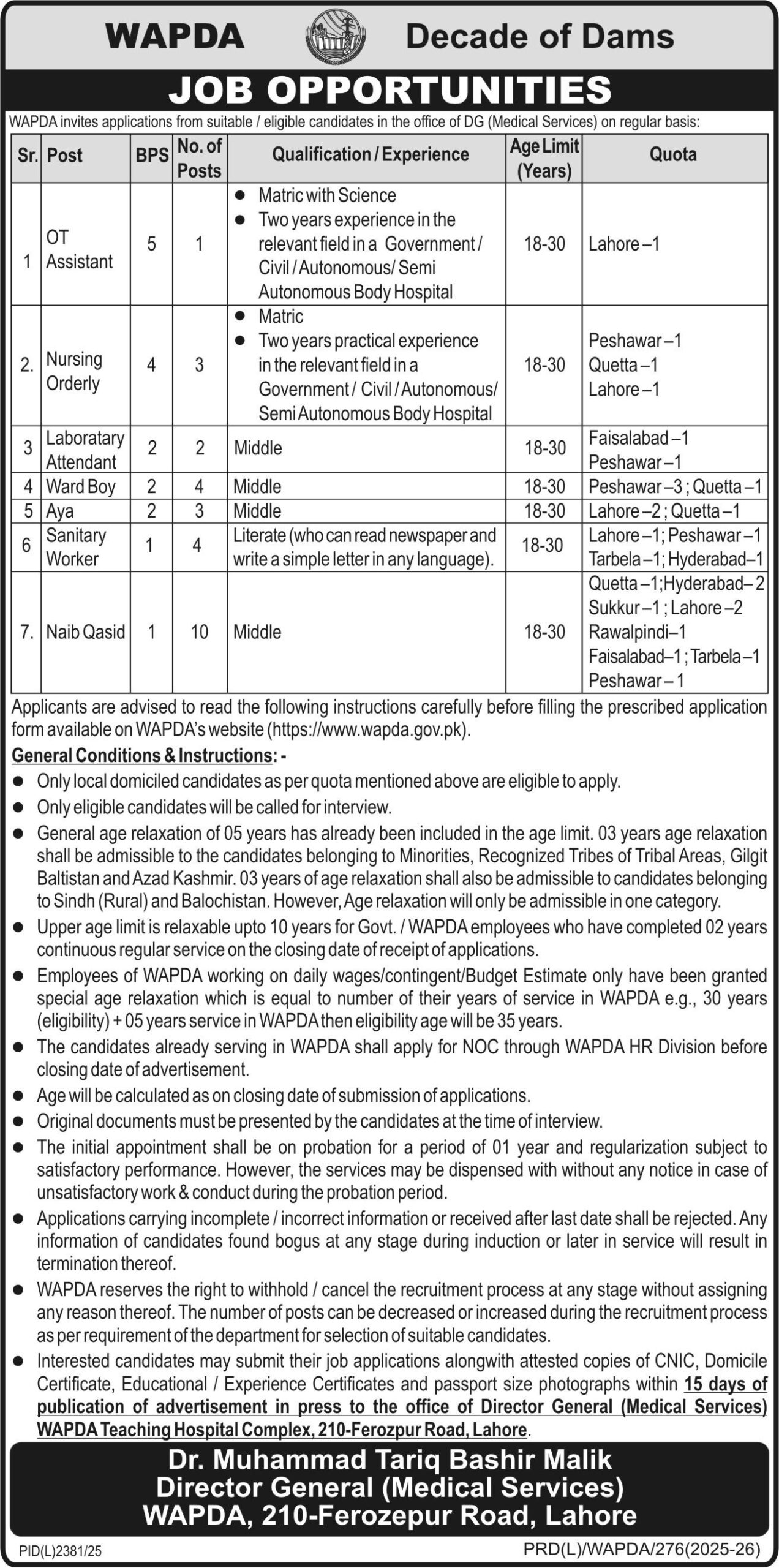 - Laboratory Attendant (02 Positions) BPS-02